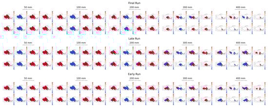 The three composite images of Figure 8 depict the spatial performance of IDW and kriging interpolation techniques over a spectrum of rainfall intensity thresholds (50 mm to 400 mm) through essential verification metrics: POD, FAR, CSI, and PSS. Throughout all runs, IDW outperforms kriging, especially in the **central and western regions of Thessaly, where station density is greater and terrain more homogeneous. At lower thresholds (50 mm and 100 mm), all three runs exhibit generally good skill for both methods, with high POD and CSI values and low FAR, suggesting consistent detection of rainfall. However, as thresholds exceed 200 mm, the differences between runs and methods intensify. In the final run, IDW retains greater spatial coherence and higher skill compared to kriging, especially at 300 mm and 400 mm, where kriging is characterized by spatial fragmentation and numerous undefined (NaN) areas in the northeast and east. The early run presents similar spatial features to the final run, albeit with somewhat greater degradation of kriging performance at elevated thresholds. The late run reveals the largest disparity between the two methods, with kriging failing to identify high-intensity rainfall over extensive areas of the study region, especially in the eastern coastal and northern mountainous regions. IDW, however, maintains comparatively high POD and CSI in the southwest and western plains, with more stable PSS values for all thresholds. Overall, comparative analysis indicates that IDW yields a more reliable and spatially stable portrayal of extreme rainfall events, whereas kriging is more sensitive to rainfall threshold, spatial heterogeneity, and likely sparse observational input, particularly in the late run scenario.