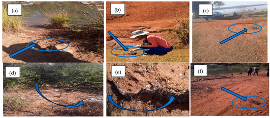 Figure 2 shows some of the open defecation sites identified within the target municipalities. Following the methods outlined by Mogane et al. [19], a total of 111 human and animal composite faecal samples were aseptically collected from surface and groundwater source areas in selected villages during both the wet (March–April 2021) and dry (June–July 2021) seasons to assess the influence of seasonal variation on the faecal contamination of water sources. The wet season in the study area was characterised by heavy rainfall, increased surface runoff, and elevated water table levels, which may have facilitated the transport of faecal matter from open defecation sites and livestock grazing areas into nearby surface and groundwater sources. In contrast, the dry season typically featured reduced precipitation and hence lower runoff of faecal material into adjacent waterbodies. The collected faecal samples in this study included human (n = 49), cow (n = 49), pig (n = 3), chicken (n = 3), and dog (n = 7) faeces and were promptly transported in a cooler box to the microbiology laboratory at the University of Venda for preliminary analysis within 24 h.