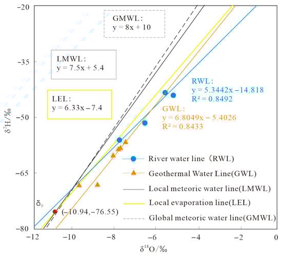 This study is based on a dataset of deuterium and oxygen isotopes in geothermal water and surrounding river water and constructs an isotope water line system in geothermal areas to reveal the evaporation and fractionation mechanisms and recharge characteristics of different water bodies (