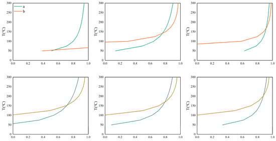 2 content, enthalpy value, and temperature, the cold water mixing ratio curves of a and b were plotted. The vertical coordinate of the intersection point of a and b represents the cold water mixing ratio, and the vertical coordinate represents the initial temperature of the deep geothermal water (