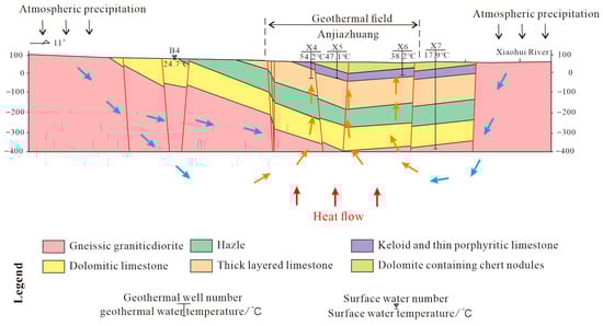 7]. By analyzing geothermal geological features such as heat source conditions, heat-controlling tectonics, heat storage conditions, and cover conditions in the area, the geothermal genesis model can be summarized [