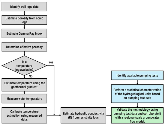 Proposed methodology for estimating hydraulic conductivity from borehole geophysical logs.