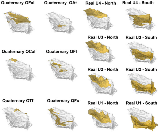 The sedimentary units in the MMV are dominated by clastic sediments of alluvial origin, which include sedimentary rocks with varying degrees of consolidation. Coarse-grained materials such as sands and gravels are predominant, and are interbedded with fine-grained materials such as clays and silts, which are typical characteristics of sedimentary depositional environments [60,61].