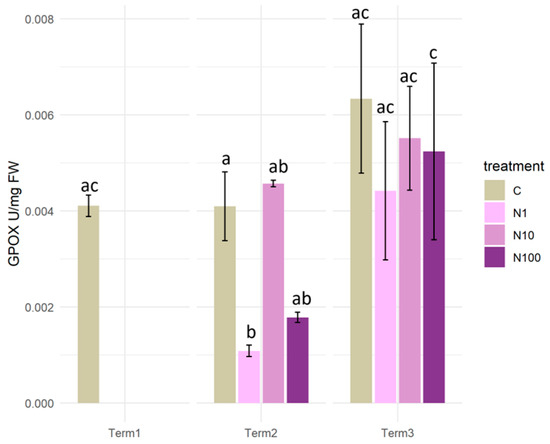 Enzyme activity was determined spectrophotometrically using a SPECORD 40 spectrophotometer (Analytik Jena GmbH, Jena, Germany). The procedure for determining GPOX activity was carried out according to the method described by Małolepsza and Urbanek [46]. Absorbance was measured at 480 nm for 4 min at 1-min intervals.