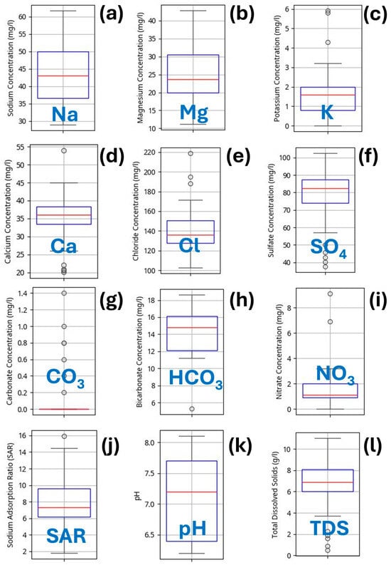 Immediately after collection, all samples were clearly labeled with unique identifiers and metadata, including date, time, and well characteristics, to maintain traceability. They were then stored in cooled containers, typically refrigerated at 4 °C, to inhibit microbial activity and chemical alteration before analysis. These precautions ensured the chemical composition remained as representative as possible of in situ groundwater conditions.