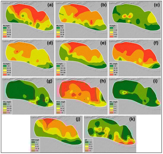- Yazdanpanah, N. Spatiotemporal mapping of groundwater quality for irrigation using geostatistical analysis combined with a linear regression method. Model. Earth Syst. Environ. 2016, 2, 18. [Google Scholar] [CrossRef]