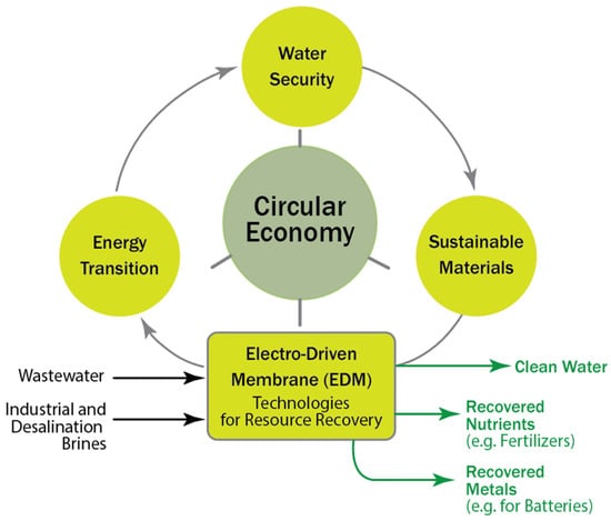 This work will not delve into the intricate details of polymer synthesis for membranes but will instead focus on the performance outcomes of different membrane types. The review begins by outlining the fundamental principles governing EDM processes before presenting a critical comparison of the leading technologies, including electrodialysis (ED) and membrane capacitive deionization (MCDI). A detailed analysis of the key factors influencing energy consumption and a survey of recent applications in nutrient, metal, and acid/base recovery will be provided. Finally, this review highlights the principal conclusions that while EDMs represent a vital technology for resource recovery, future progress hinges on targeted innovations in robust membrane materials and integrated process design to bridge the gap between laboratory potential and industrial feasibility, thereby overcoming the critical barriers of selectivity and long-term operational stability.