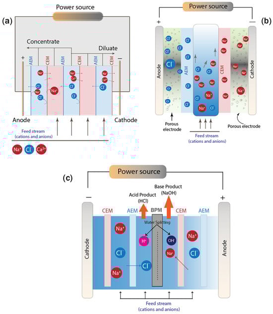 14]. Therefore, the primary aim of this review is to provide a comprehensive and critical assessment of the current state of electro-driven membranes, with a specific focus on their energy efficiency and practical applicability for ion recovery.