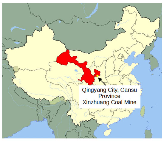 The experiment is based on the frozen shaft of the return air shaft in the Xinzhuang Coal Mine, located in the Ningzheng Coalfield, Gansu Province. The Xinzhuang Coal Mine is situated in Qingyang City, as depicted in Figure 1. The primary strata traversed by mines in western China include the Cretaceous and Jurassic formations. The Cretaceous strata predominantly consist of soft rocks such as sandstone and mudstone. Their main engineering characteristics are high hardness when dry, a strong affinity for water, a tendency to disintegrate upon exposure to water, a marked reduction in strength, and a significant softening effect.