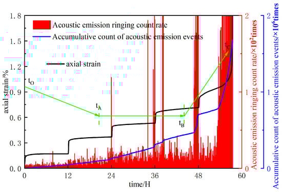 Acoustic emission under creep conditions in saturated frozen sandstone with σ3 = 6 MPa and T = −10 °C.