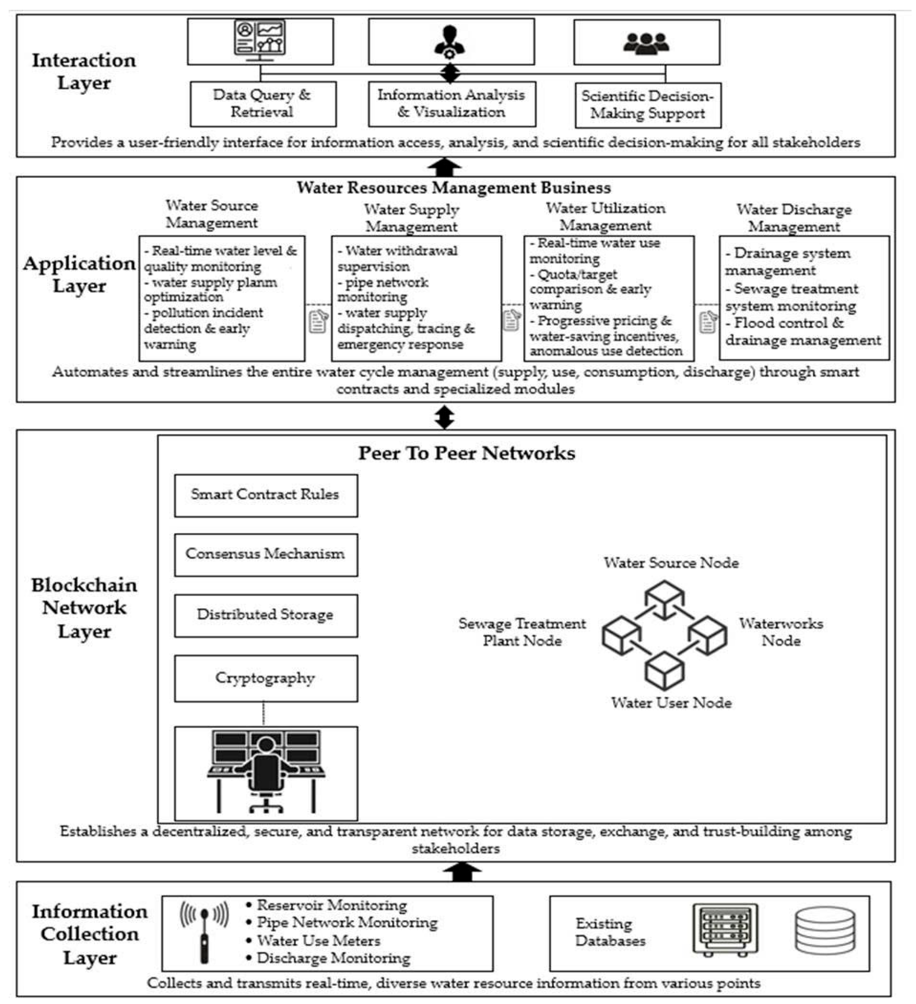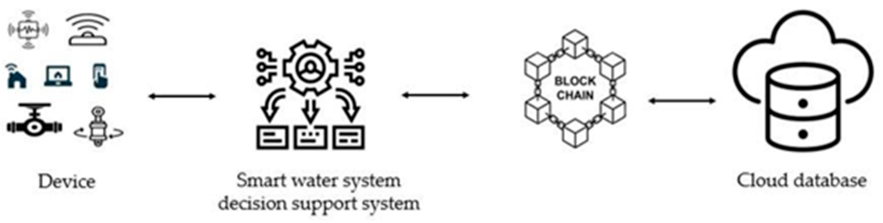 - Xia, W.; Chen, X.; Song, C. A framework of blockchain technology in intelligent water management. Front. Environ. Sci. 2022, 10, 909606. [Google Scholar] [CrossRef]