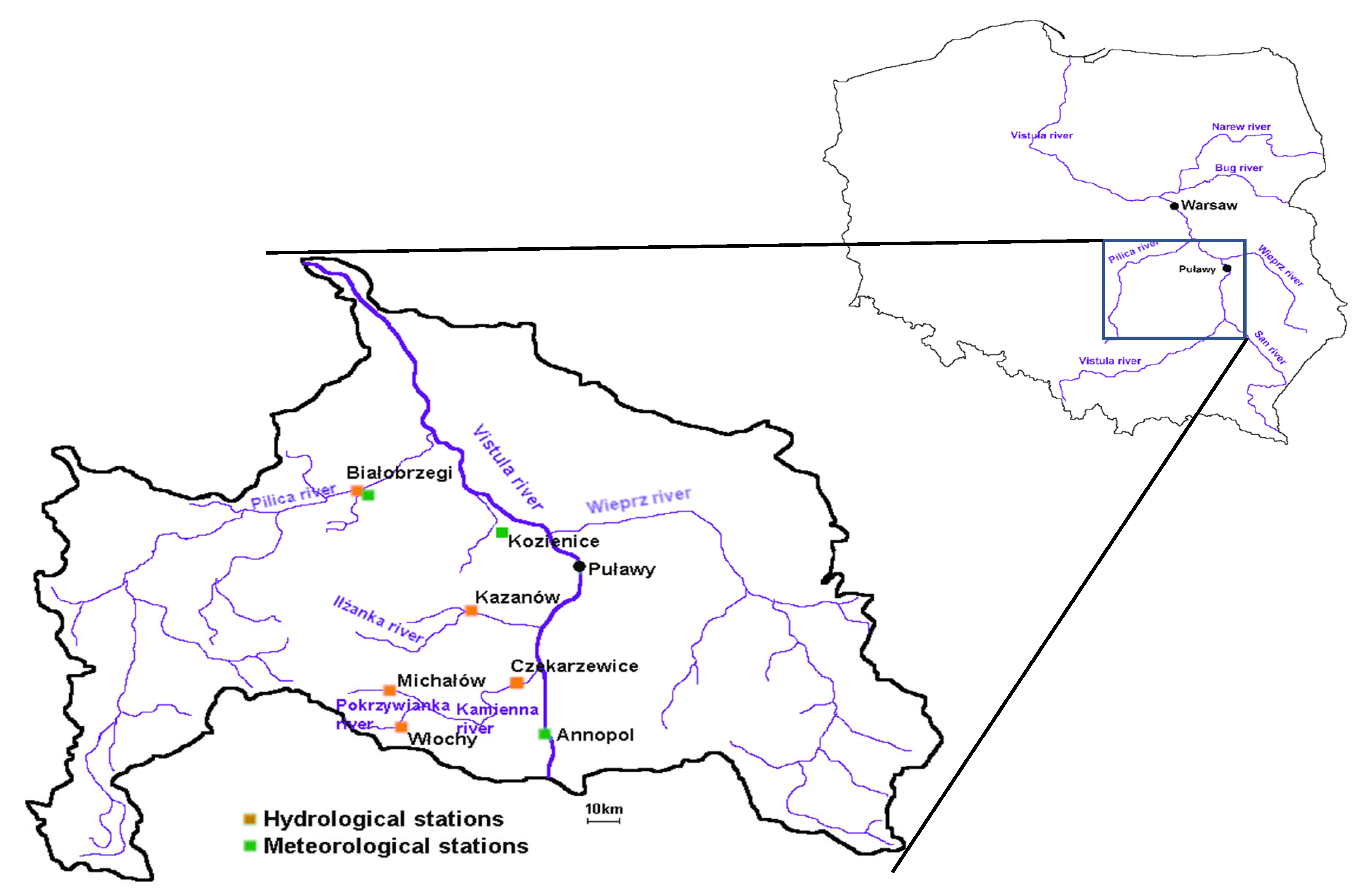 - Hejduk, A.; Kaznowska, E.; Hejduk, L.; Gładecki, J. Precipitation and discharge regime in Zagożdżonka catchment at Płachty Stare and Czarna gauge stations. Woda-Śr. Wiej. 2018, 1, 37–55. [Google Scholar]