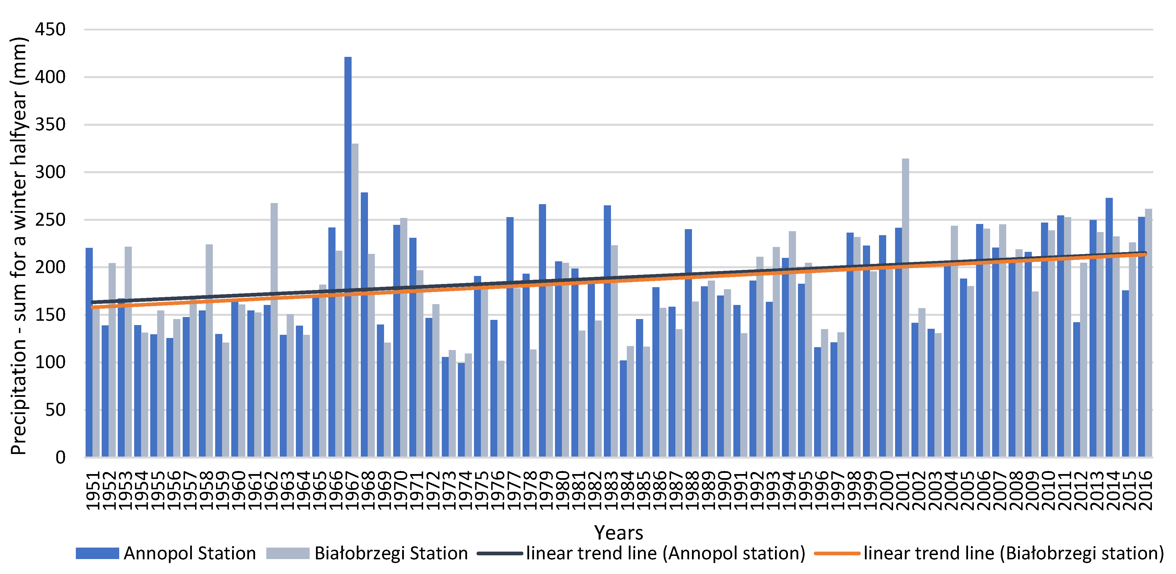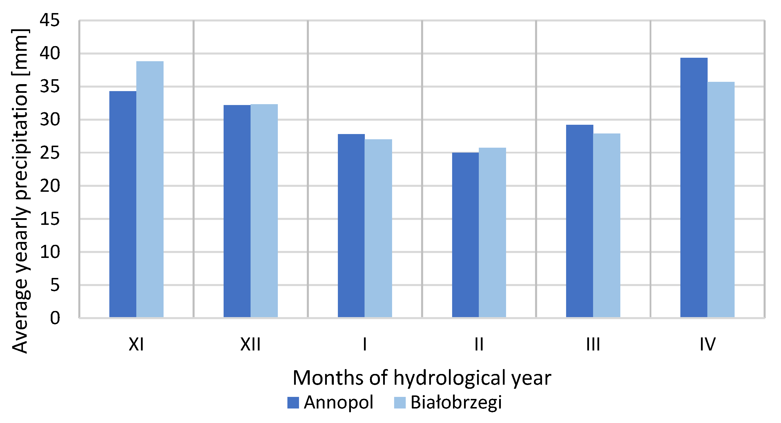 - Wibig, J.; Jędruszkiewicz, J. Changes in the Intra-Annual Precipitation Regime in Poland from 1966 to 2024. Atmosphere 2025, 16, 813. [Google Scholar] [CrossRef]
