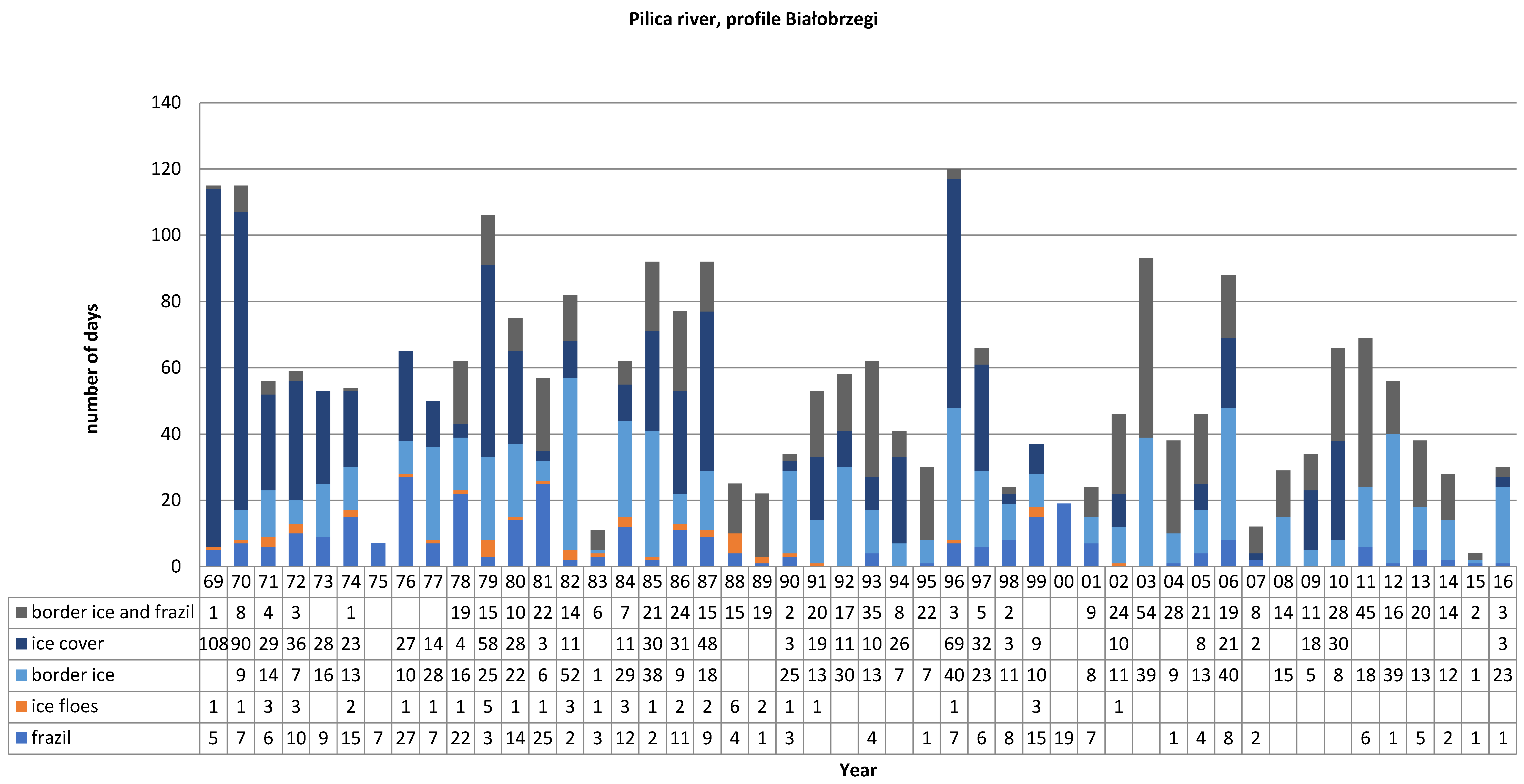 - Bączyk, A.; Suchożebrski, J. Zmienność Przebiegu Zjawisk Lodowych na Bugu w Latach 1903-2012. Inż. Ekol. 2016, 49, 136–142. [Google Scholar] [CrossRef] [PubMed]
