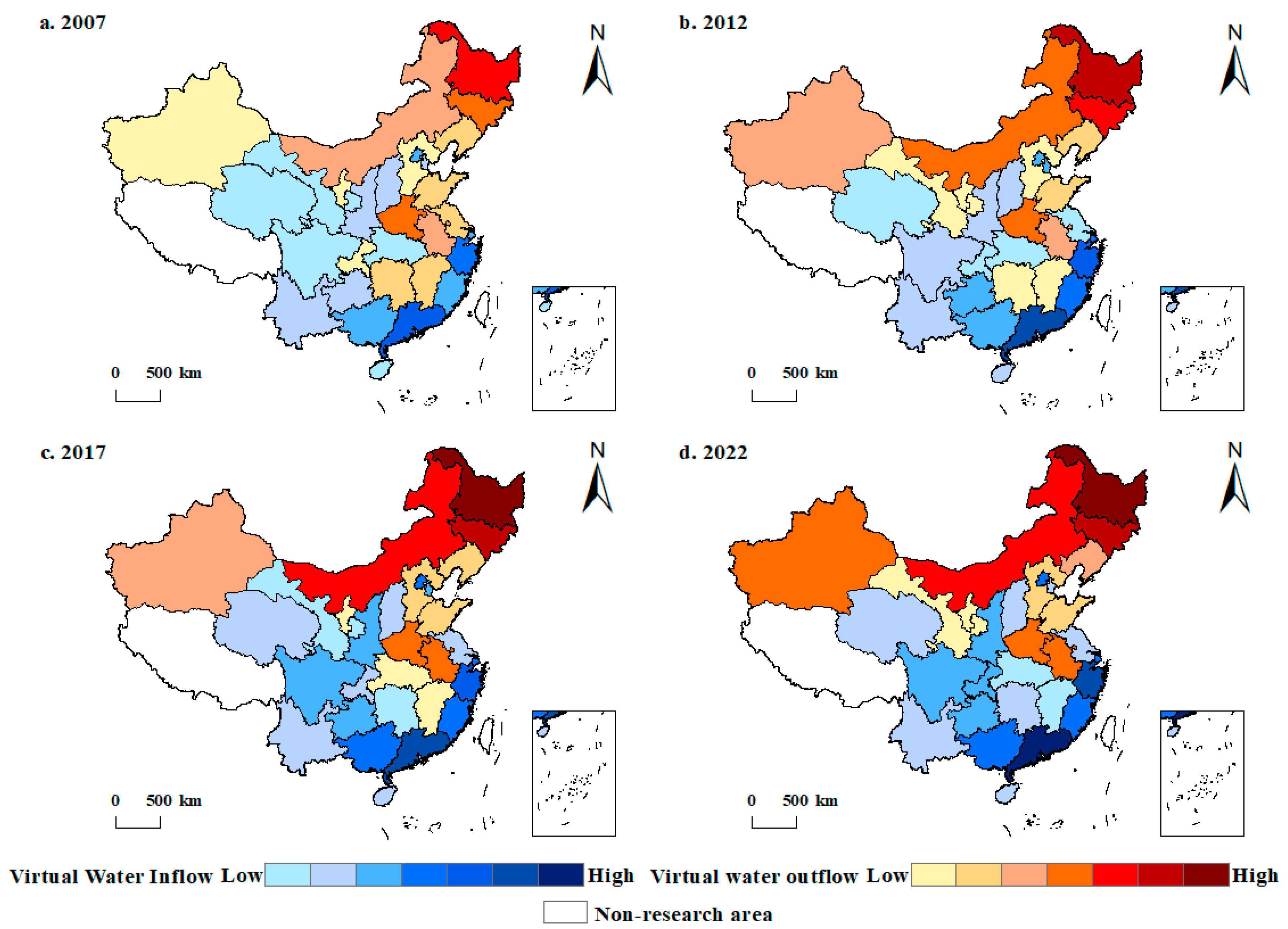 - Yang, L.; Yin, X.; Gao, Z.; Yang, B.; Zhang, Y.; Shao, Y.; Gao, T.; Hai, N.T. Prioritizing Crops for Implementing a Virtual Water Strategy That Accounts for Effects at an Economic System Scale in Water-Scarce Regions. J. Hydrol. 2025, 661, 133756. [Google Scholar] [CrossRef]