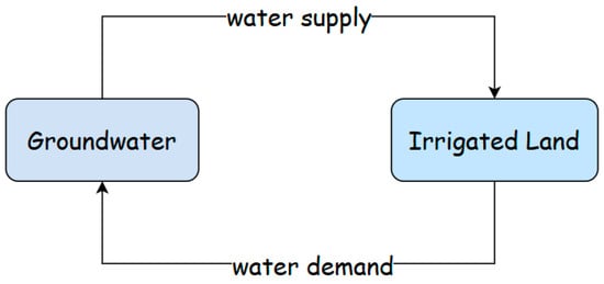 Foundational relationship between groundwater and irrigated land, showing how groundwater availability influences irrigation demand and how irrigation demand, in turn, affects groundwater use.