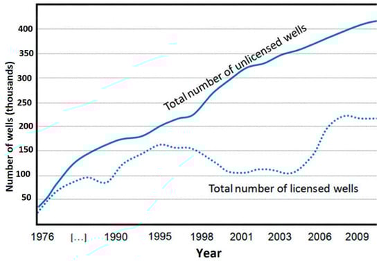 Number of legal and illegal wells [51].