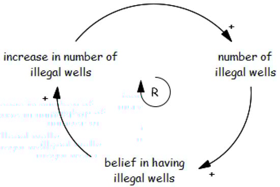 The rise in illegal wells can be explained by a reinforcing feedback loop (Figure 13): as their numbers increase, so does the belief in their effectiveness, encouraging more farmers to dig illegal wells and perpetuating the cycle. This creates a vicious circle of illegal well drilling.