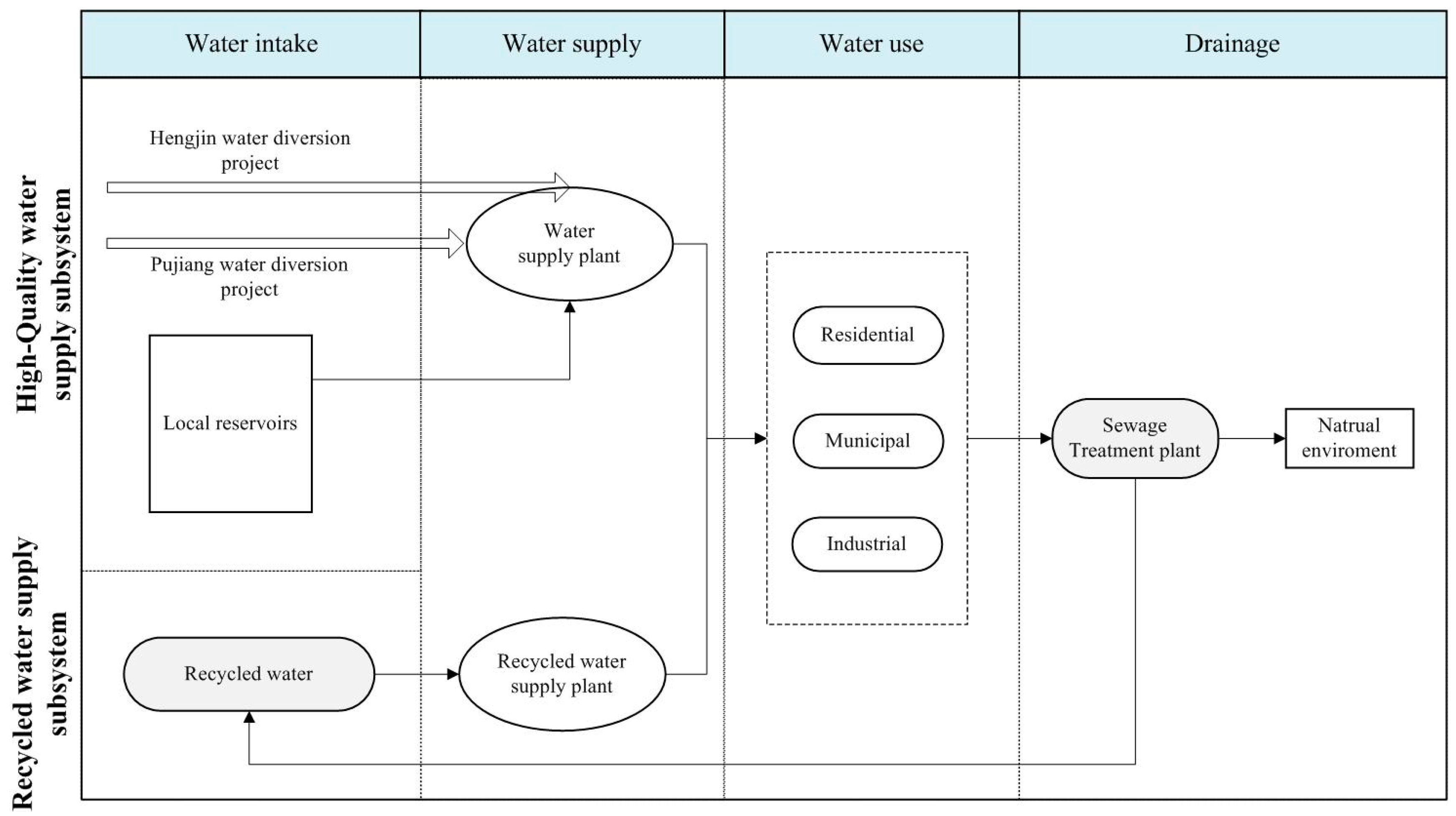 | Local Reservoirs | Hengjin Water Diversion Project | Pujiang Water Diversion Project | Recycled Water | |