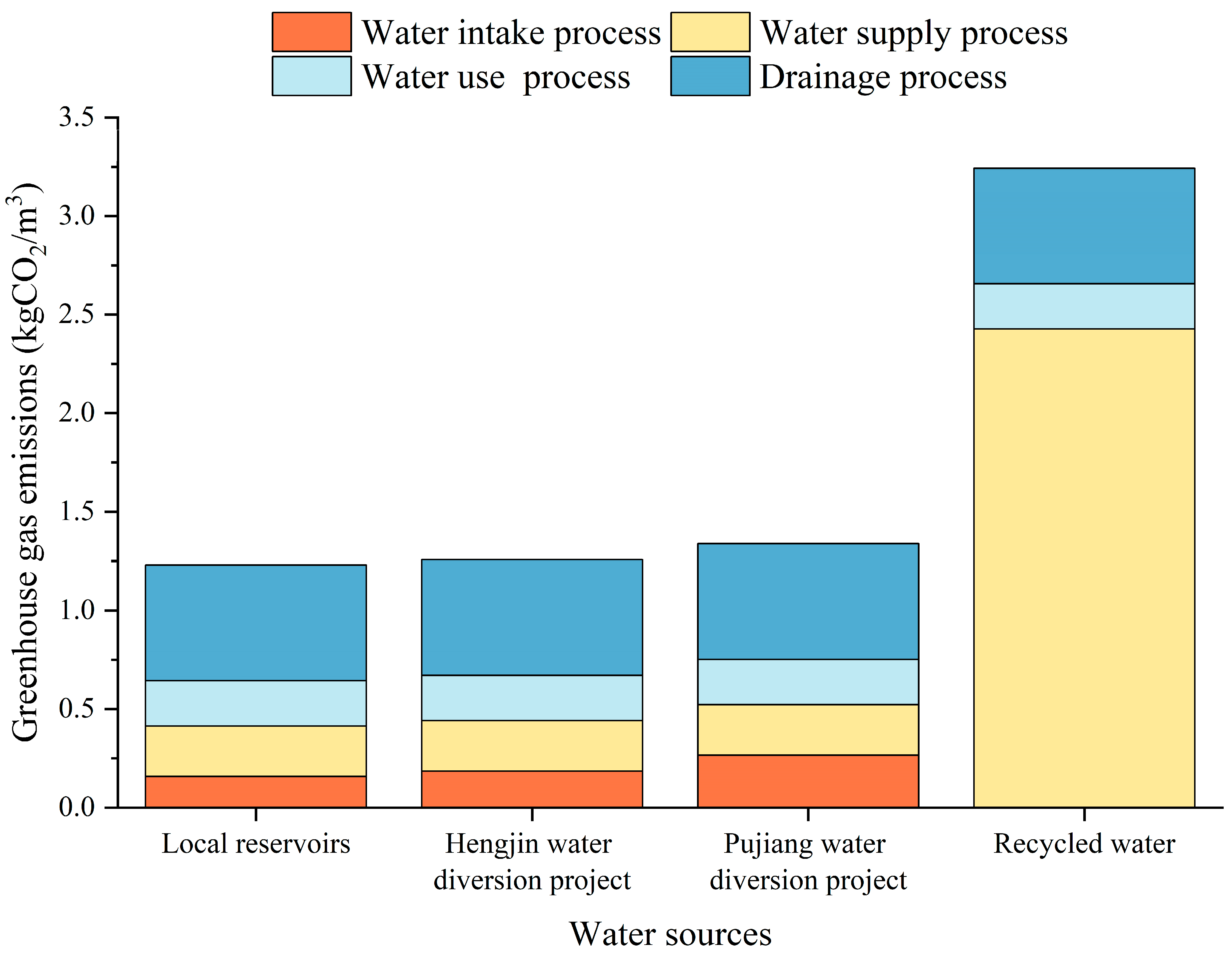3.1.1. Calculation of the Greenhouse Gas Emissions of Different Water Sources