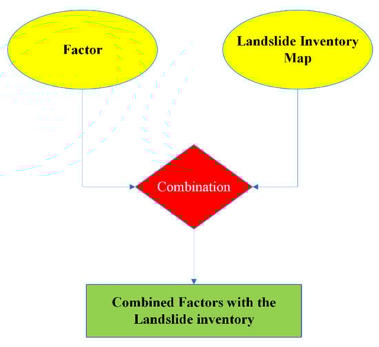 As previously explained, the bivariate methods—FR and WOE—analyze each conditioning factor independently in the context of landslide susceptibility. Before conducting the analysis, it is essential to spatially overlay the landslide inventory with each thematic factor layer to calculate the frequency of landslide occurrences within each class. To streamline and automate this process, a custom preprocessing algorithm was developed (Figure 6) to prepare the input data required for bivariate analysis.