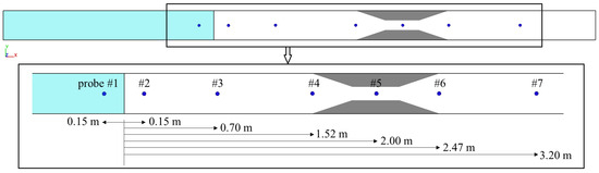 Definitions of probe locations in the numerical model (where # indicates the probe number).