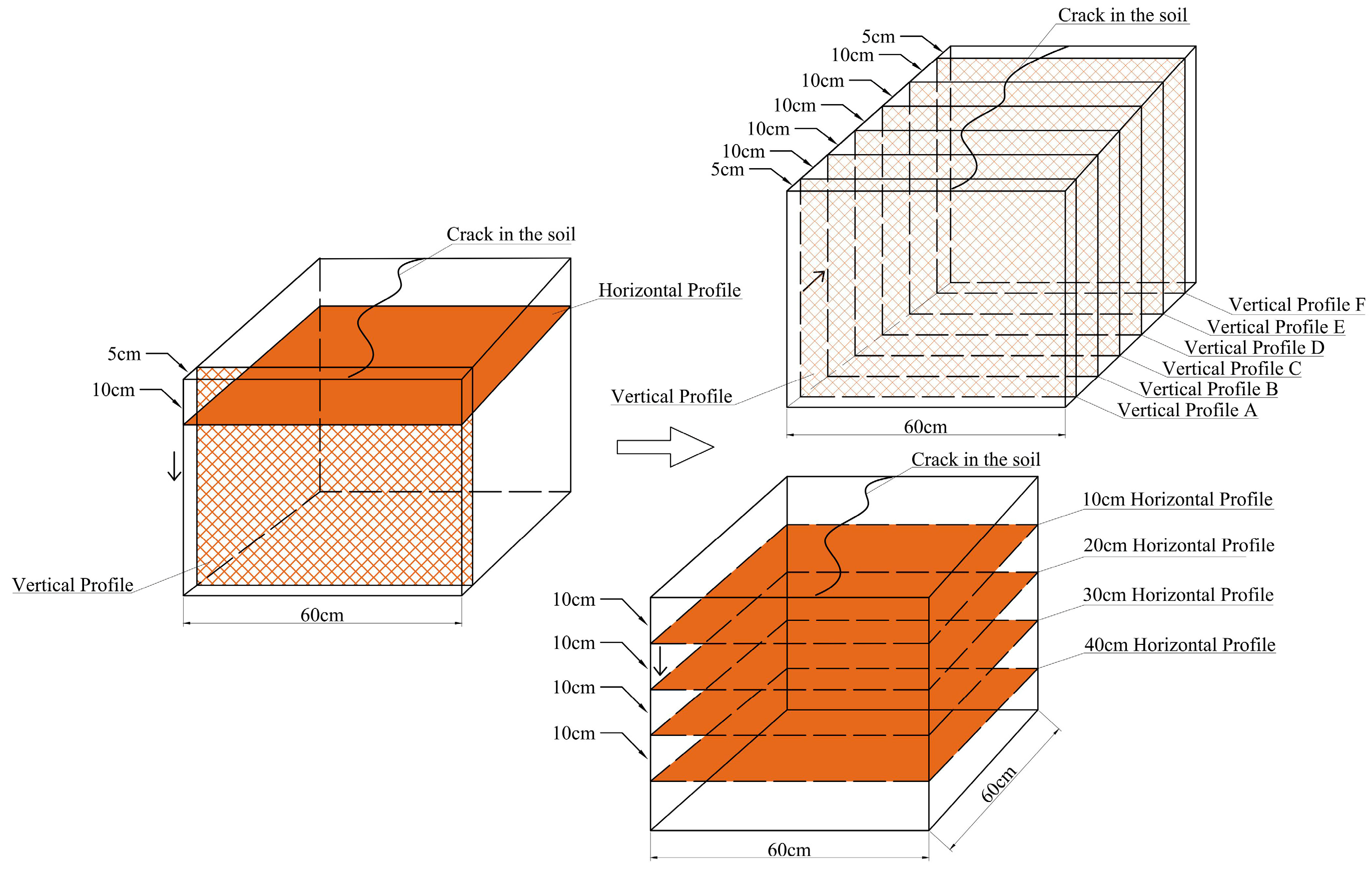 - Duan, F.Y.; Zhu, C.L.; Wang, C. Effects of cracking patterns and antecedent soil water content on preferential flow of irrigated water. J. Irrig. Drain. 2023, 42, 32–41. [Google Scholar]