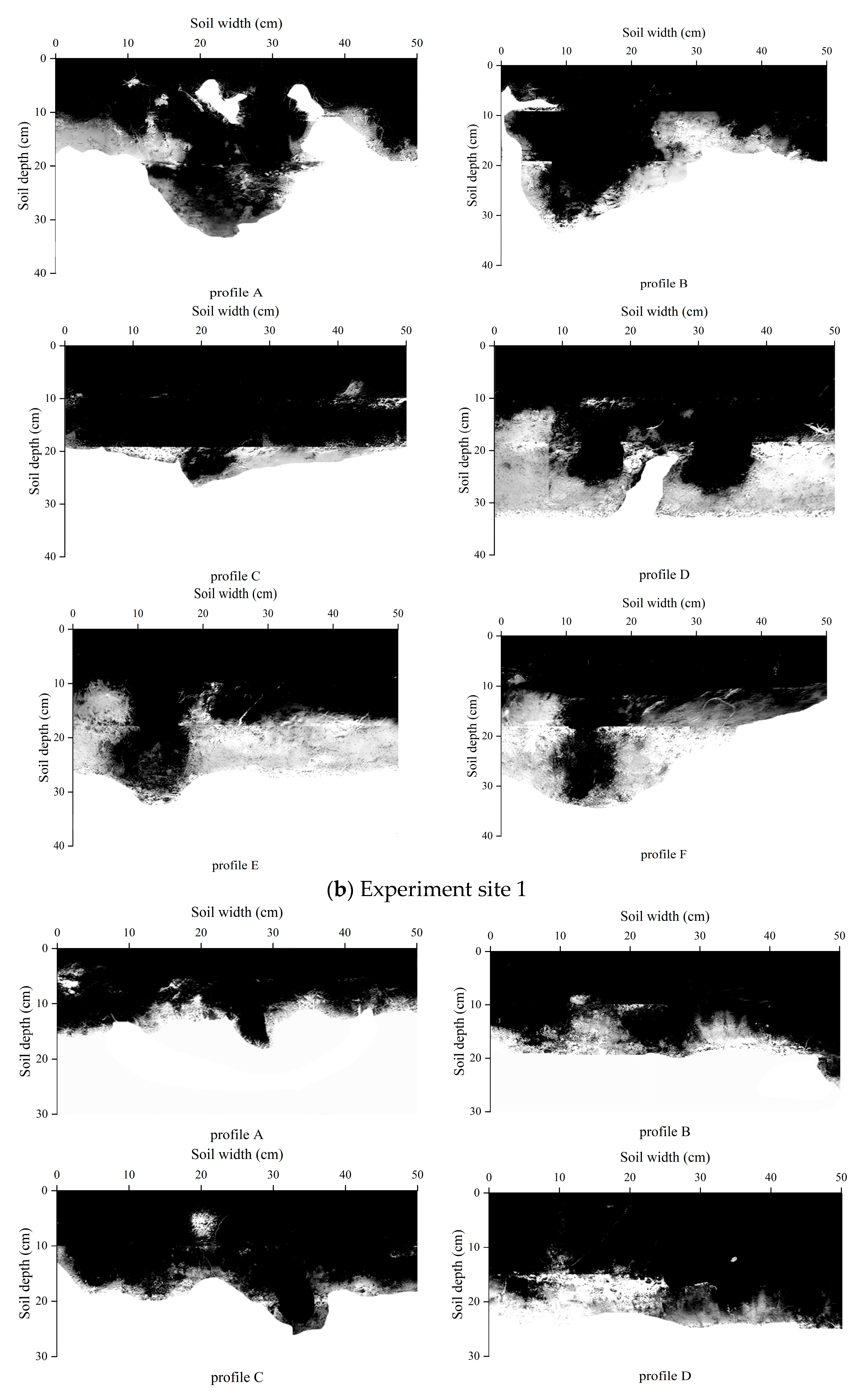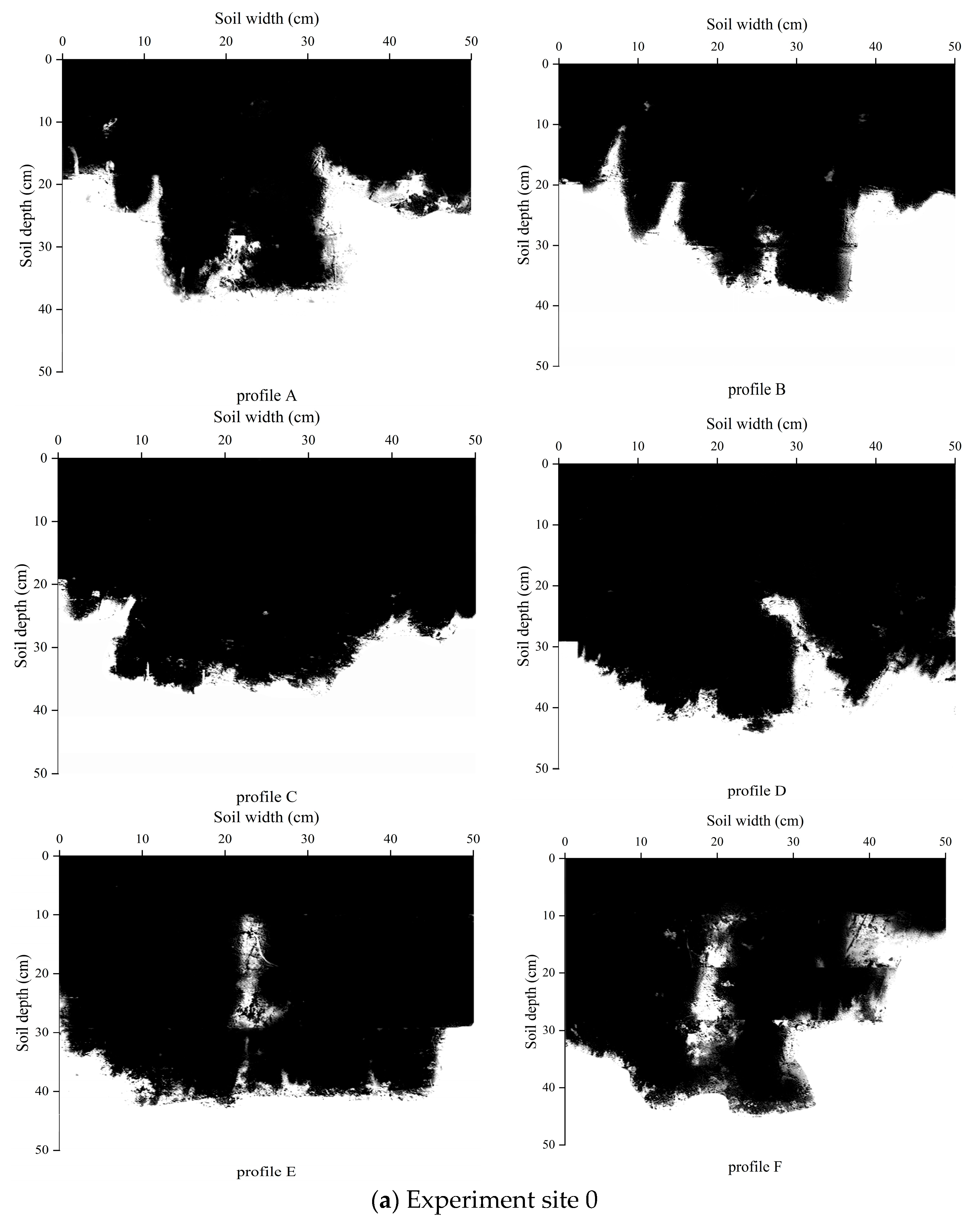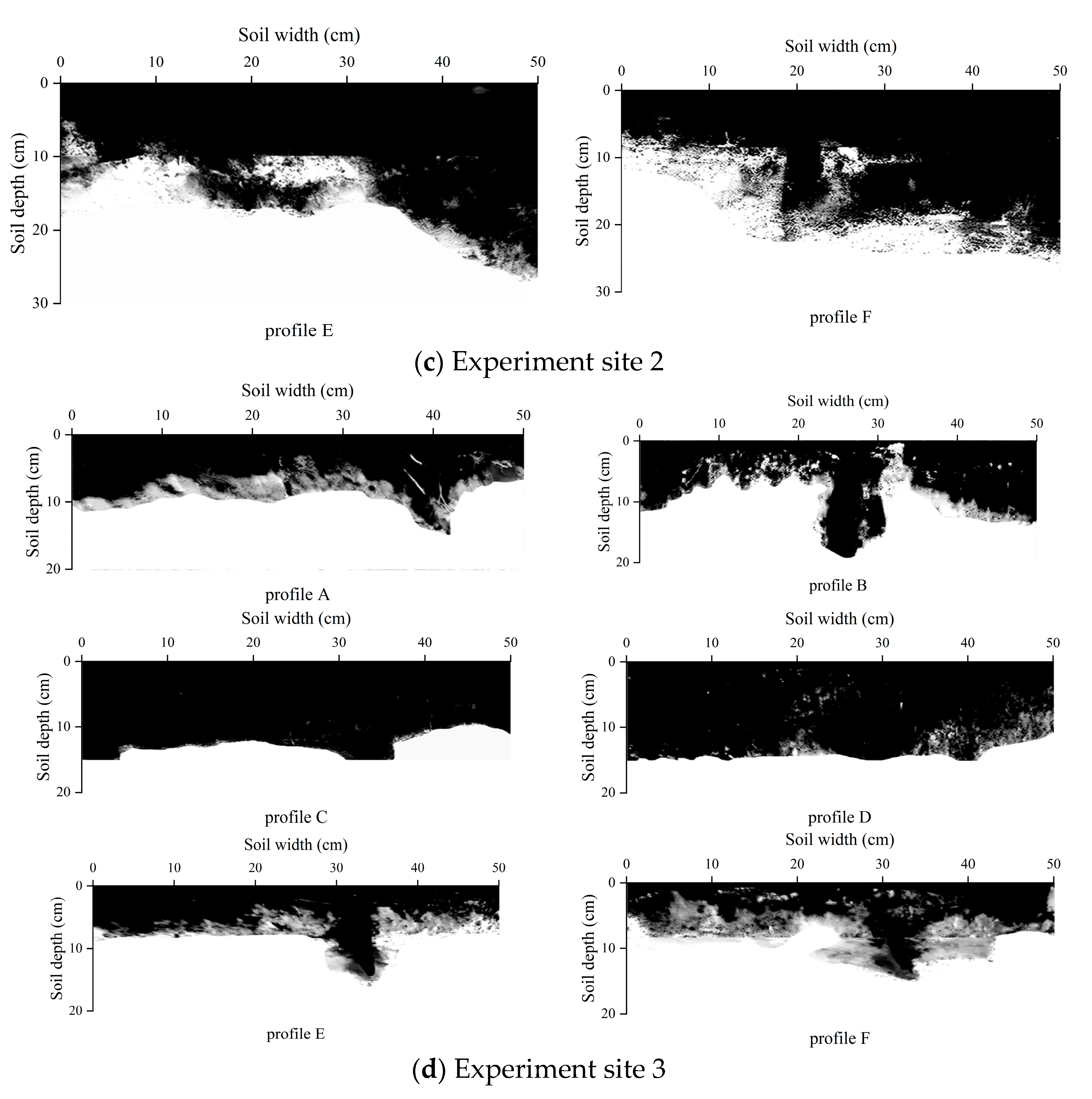 - Wu, Q.H.; Zhang, J.F.; Lin, W.J. Applying dyeing tracer to investigate patterns of soil water flow and quantify preferential flow in soil columns. Trans. Chin. Soc. Agric. Eng. 2014, 30, 82–90. [Google Scholar]