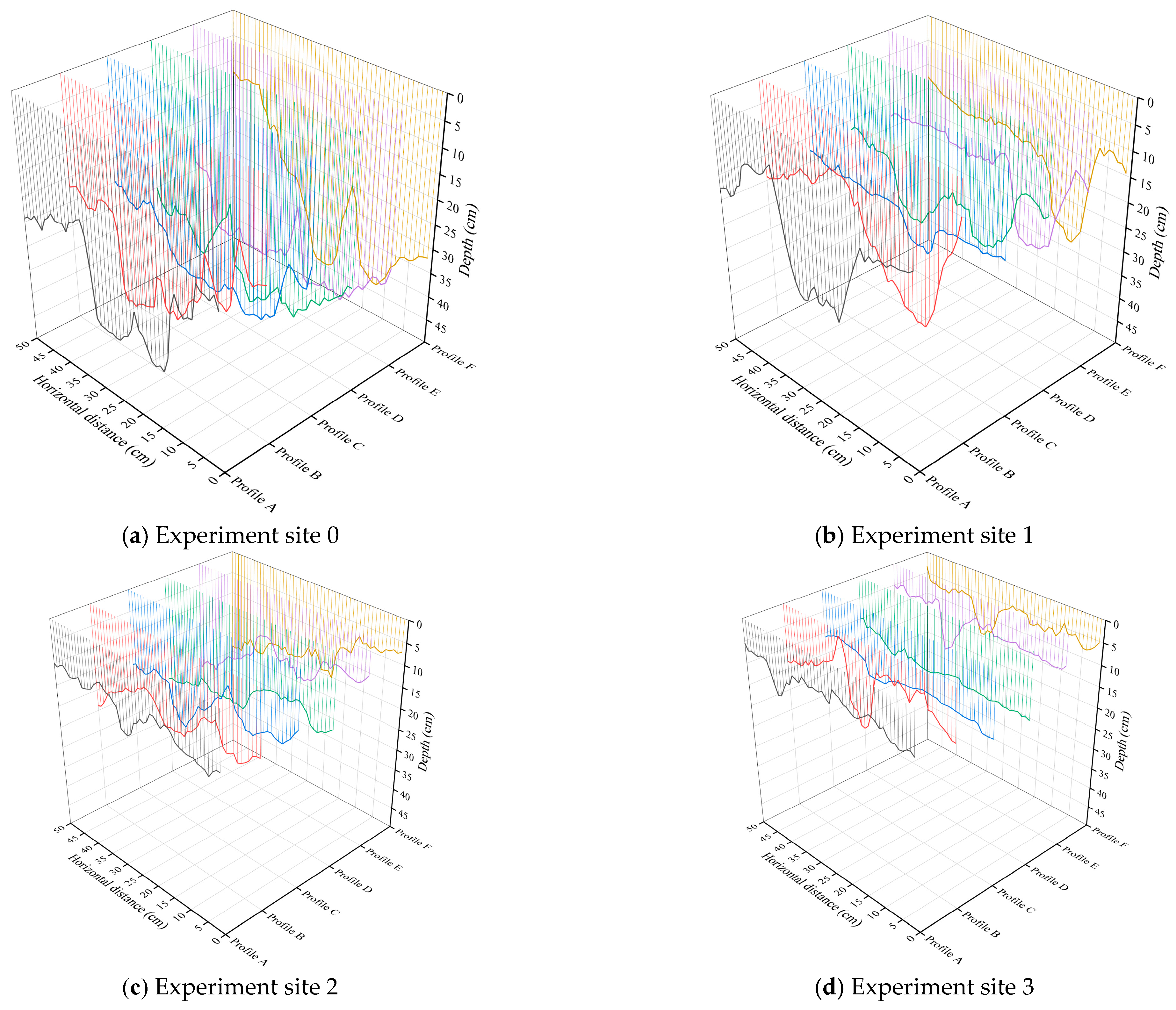 3.2.1. Preferential Flow Pattern in Vertical Profile