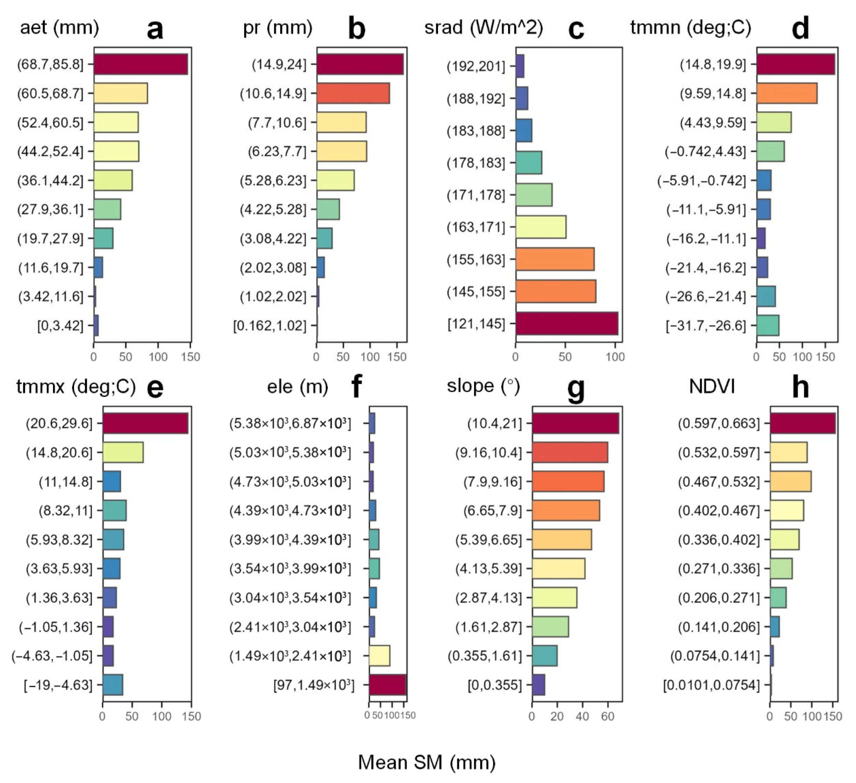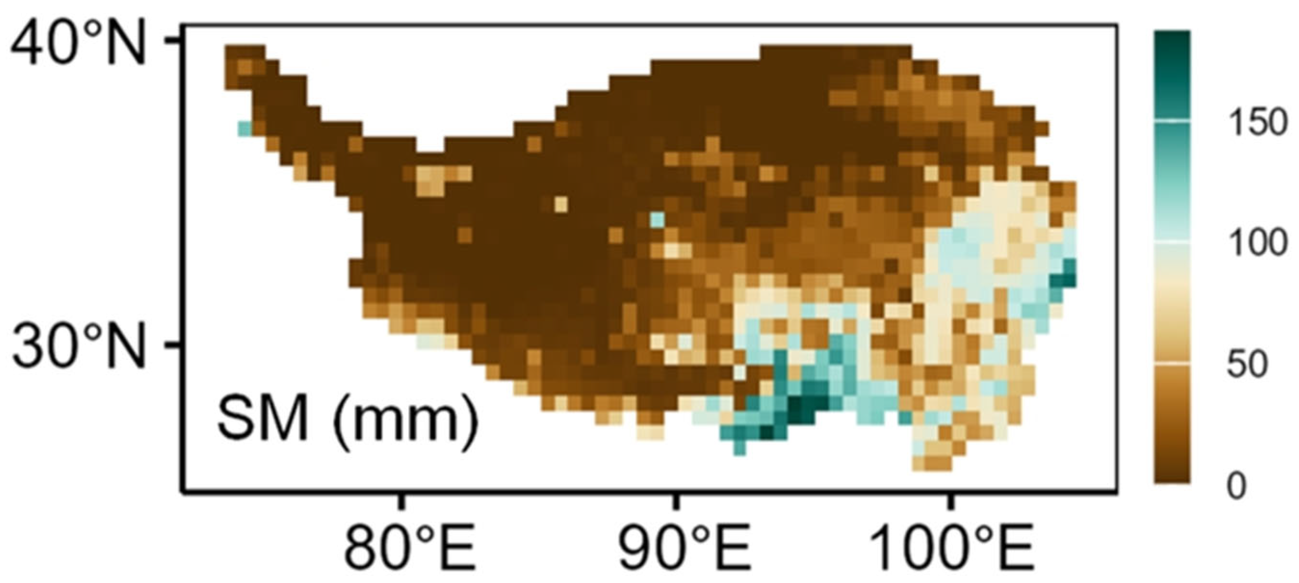 3.3. Impacts of Factors on Soil Moisture Variation Across the Tibetan Plateau