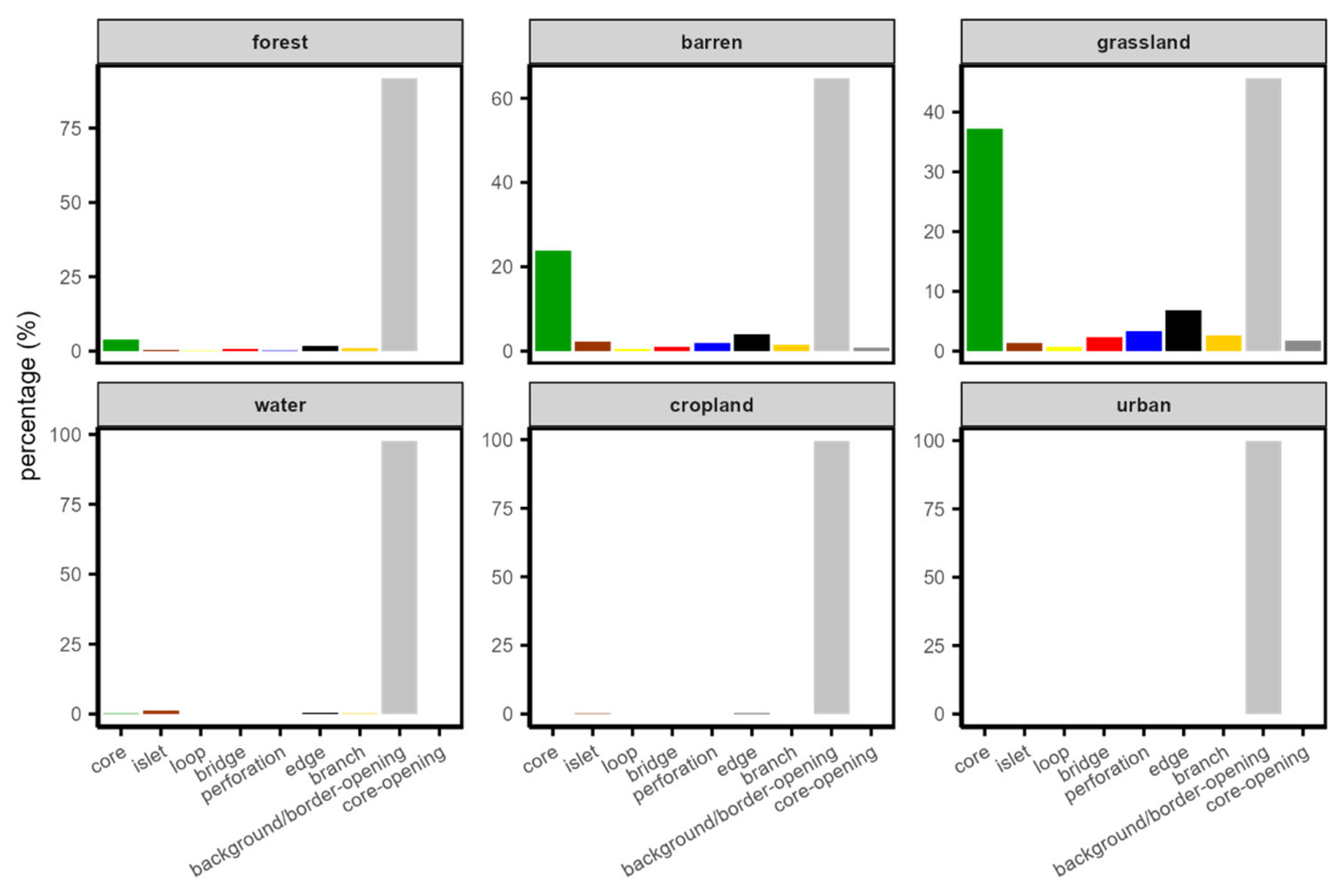- Soille, P.; Vogt, P. Morphological Spatial Pattern Analysis: Open Source Release. Int. Arch. Photogramm. Remote Sens. Spat. Inf. Sci. 2022, XLVIII-4/W1-2022, 427–433. [Google Scholar] [CrossRef]