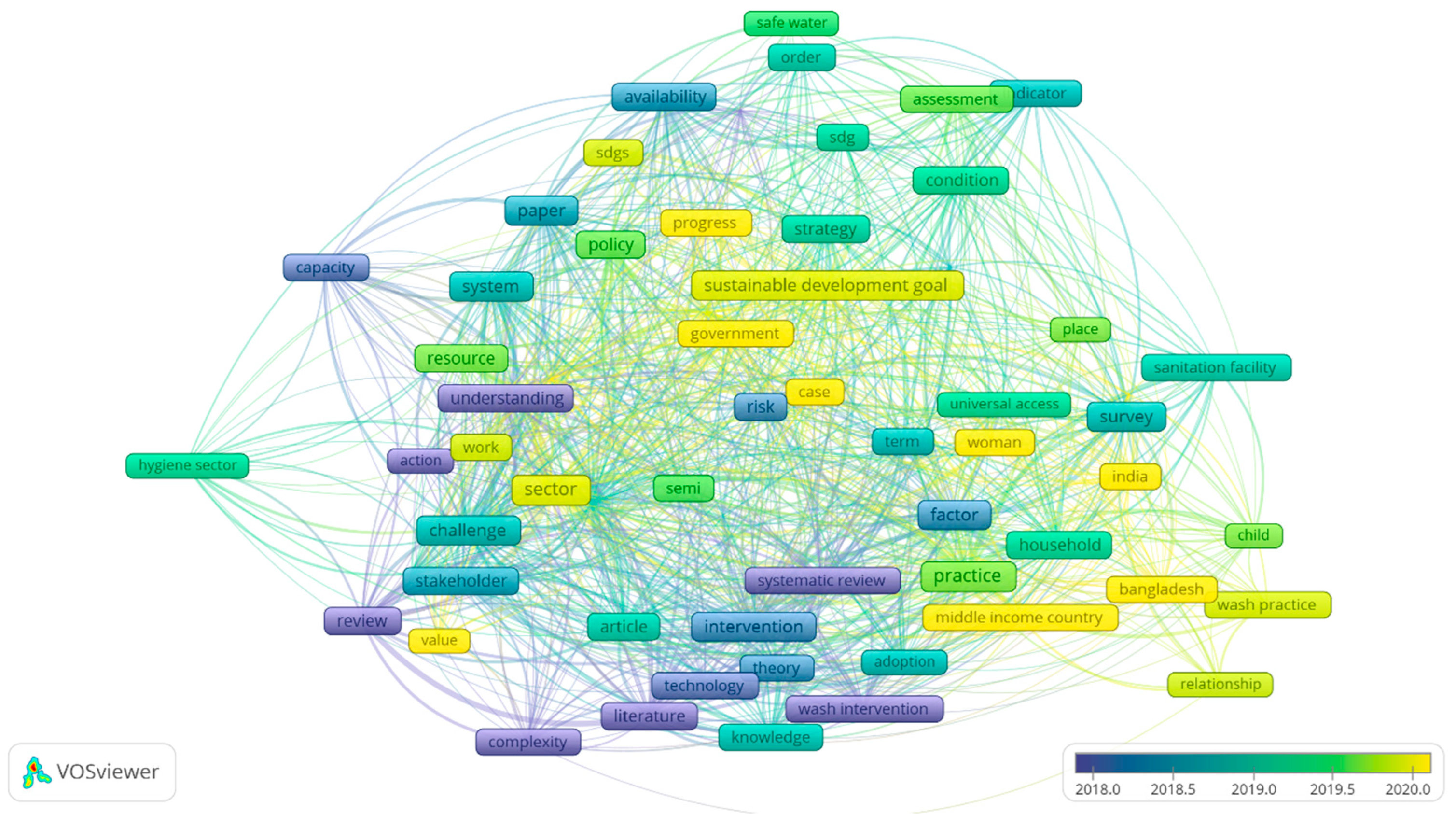 - MacDonald, M.C.; Chan, T.; Elliott, M.; Kearton, A.; Shields, K.F.; Barrington, D.J.; Souter, R.T.; Powell, B.R.; Bartram, J.; Hadwen, W.L. Temporal and thematic trends in water, sanitation and hygiene (WASH) research in pacific island Countries: A systematic review. J. Water Sanit. Hyg. Dev. 2017, 7, 352–368. [Google Scholar] [CrossRef]