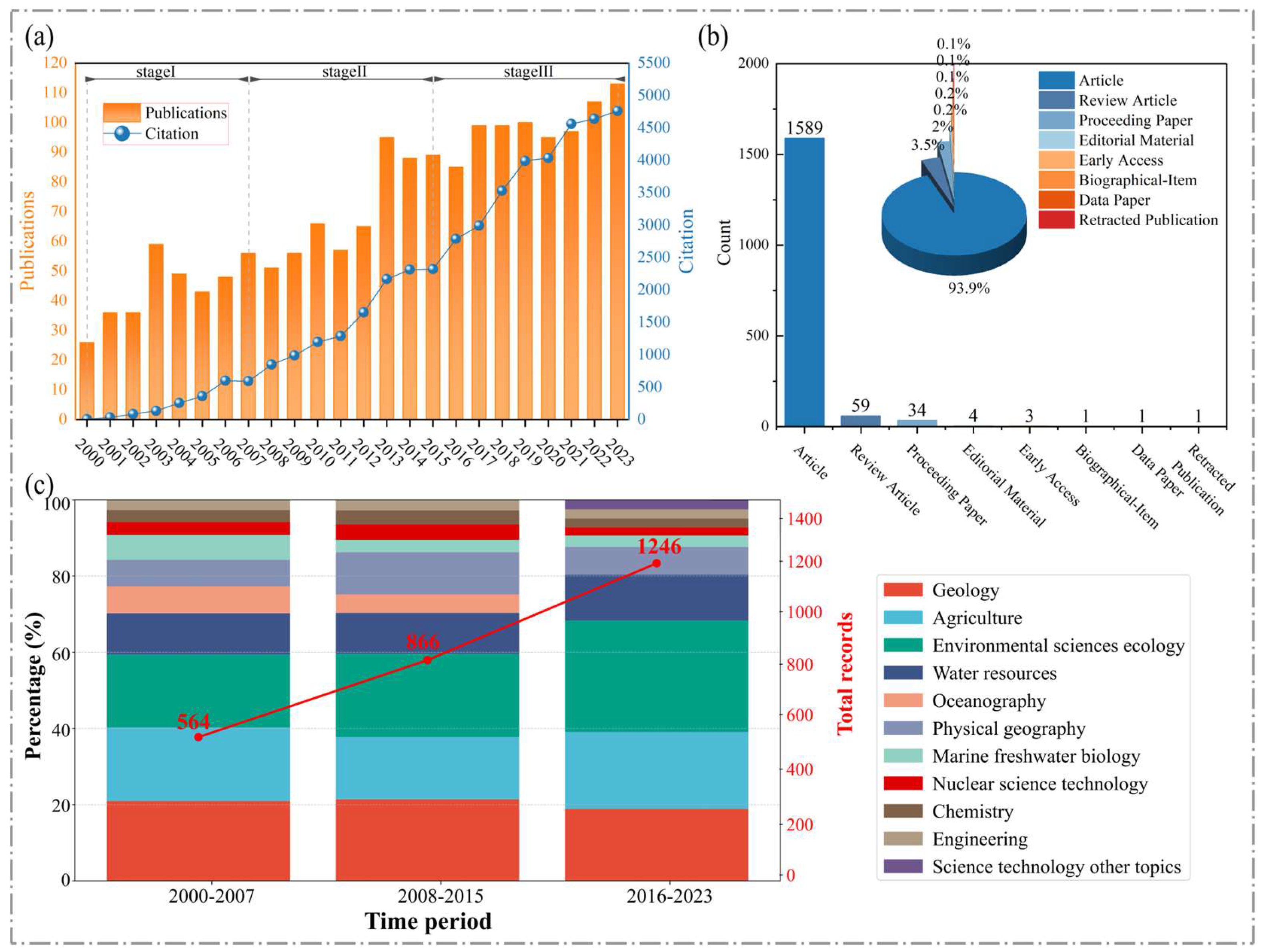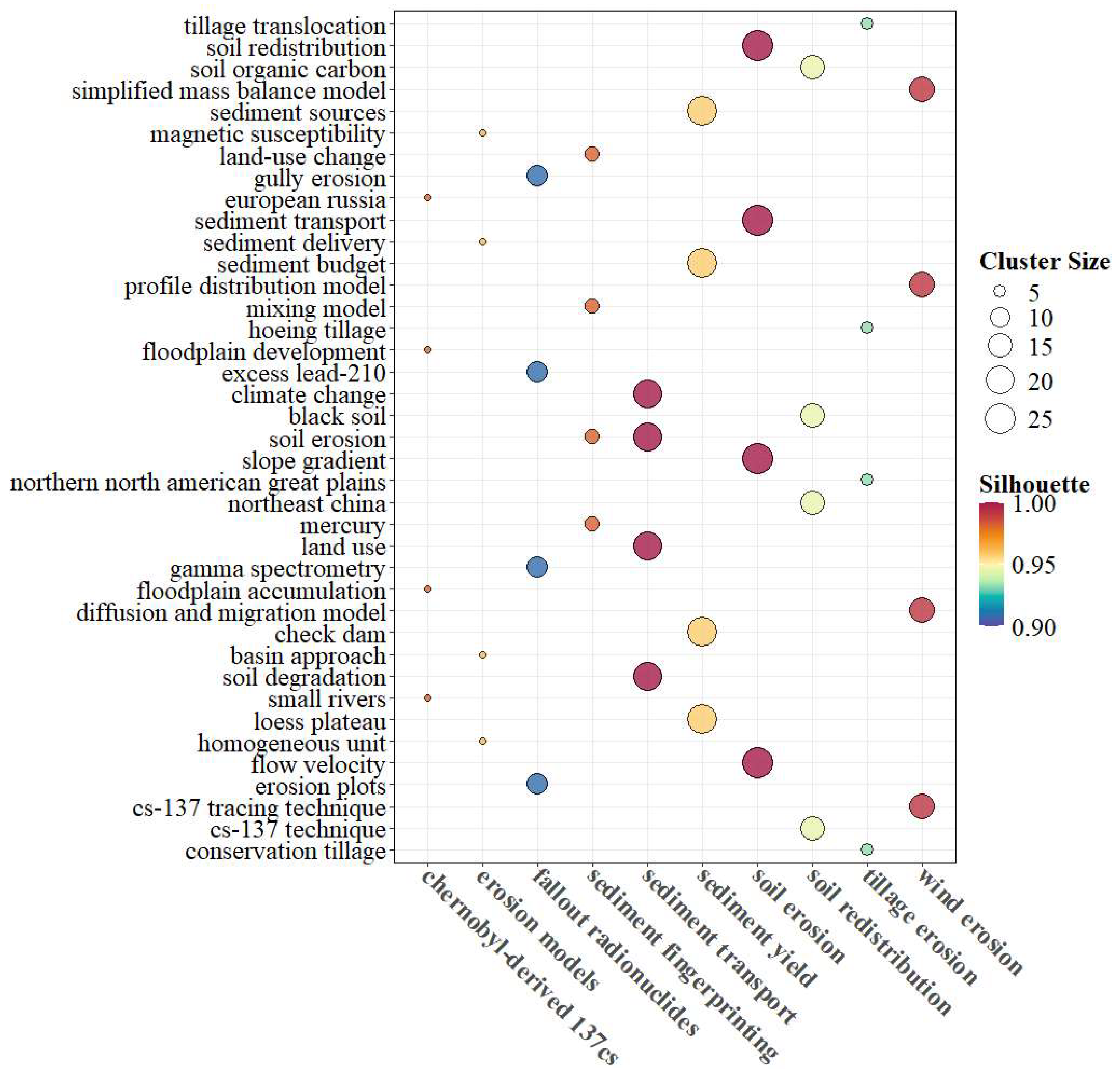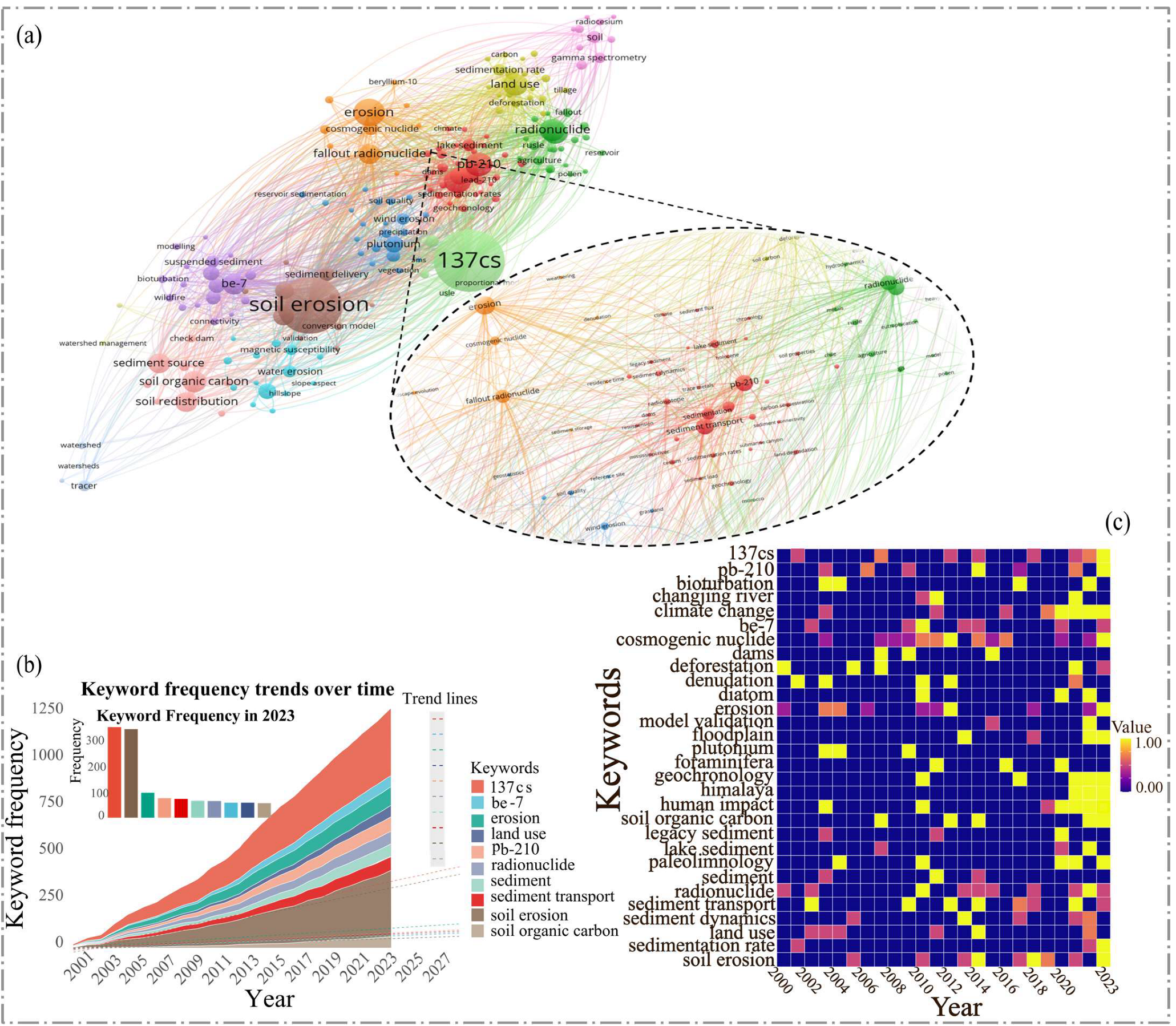 - Evolution of research hotspots: Core themes of “soil erosion” and “137Cs” persisted. Emerging topics included “paleolimnology” and “geochronology”, with “climate change” and “human impact” on erosion and their radionuclide tracer signatures becoming central concerns.