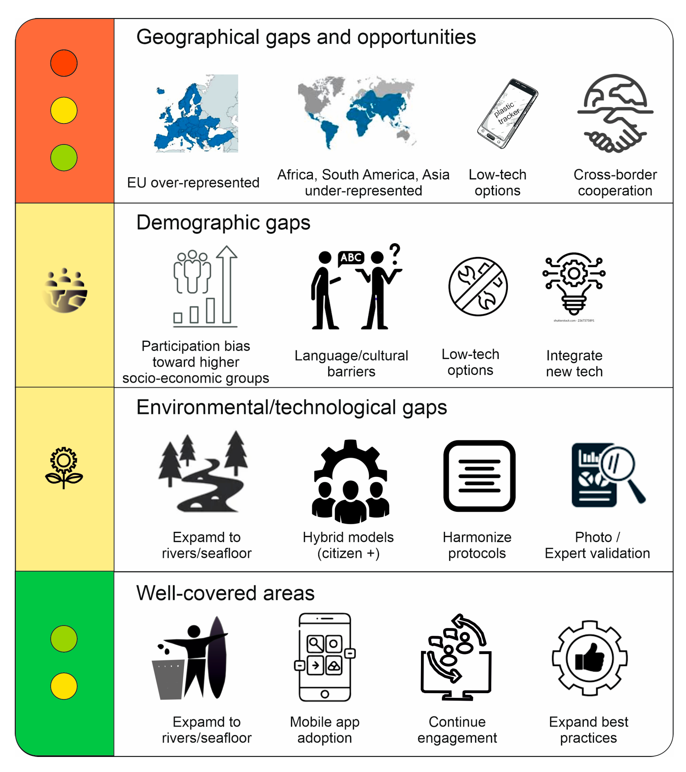 5. Persistent Challenges, Biases, and Research Gaps in Citizen Science for Plastic Pollution