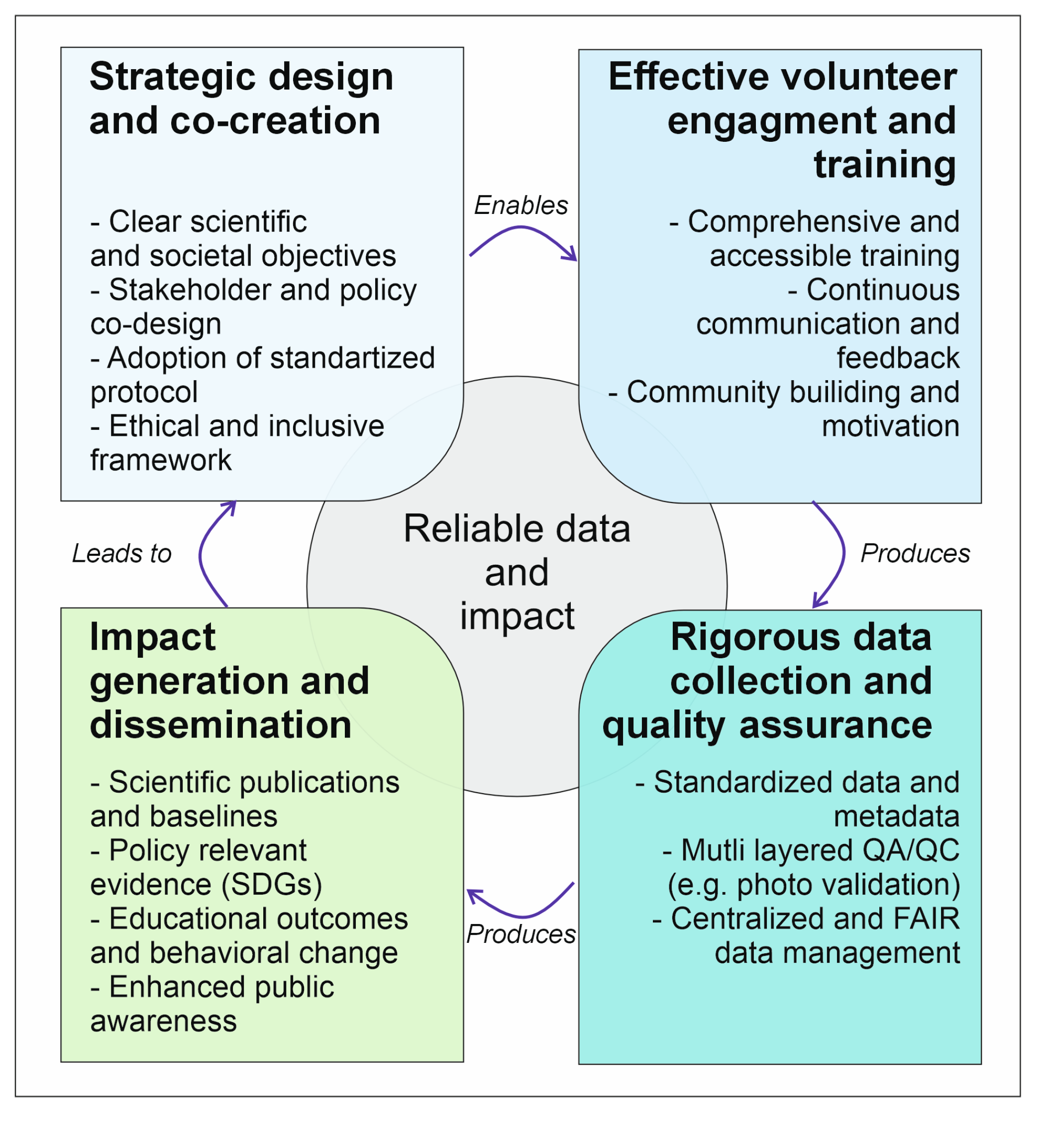 Volunteer Training And Engagement Ensure that volunteers are well-trained, understand data protocols, and remain engaged to ensure project success and data accuracy. | Define clear scientific questions and goals for the project. Develop standardized protocols are in place, potentially based on established frameworks (e.g., ODP-MSP, GEO-TAG, MSFD TG10, ICC, EMODnet). | Ensures focused researchevaluates project success, aligns CS activities with scientific goals, provides comparable data, and ensures scientific relevance. | Facilitates policy relevance, SDG reporting, public engagement, and educational benefits. | [29,53,54,55,79,95] |
