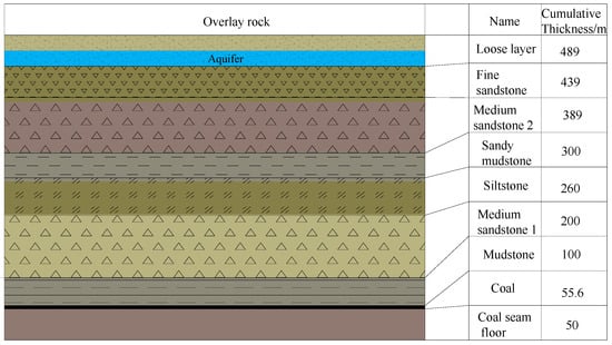 The panel is designed to mine 3# coal in the Shanxi Formation. The roof is mainly mudstone and siltstone. The stratigraphic column is shown in Figure 4. The drilling location is close to the northwest corner of the panel, which is shown in Figure 3.
