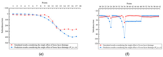 The data presented in Figure 7 and Table 4 indicate that the points located outside working panel 1309 that exhibit notable subsidence (greater than 10 mm) are primarily influenced by looser layer drainage, rather than by coal mining.