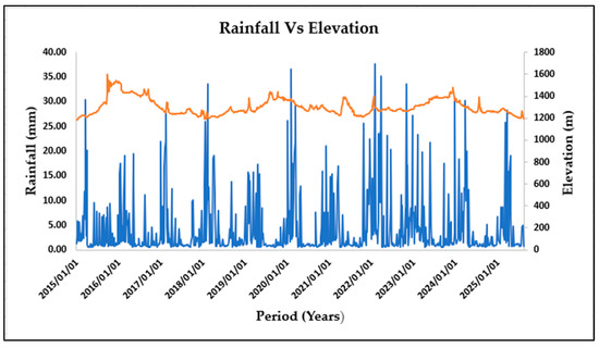 This section discusses how well an aquifer can accept and transmit groundwater with specific reference to storativity and transmissivity in assessing local and regional recharge potential areas. The rainfall and the hydraulic gradient play a pivotal role in groundwater movement and in determining recharge potential areas. Figure 14 illustrates the relationship between rainfall and elevation, which are the drivers of local and regional recharge potentials. As previously stated, the transmissivity and storativity are the two main parameters used to establish aquifer capacity to transmit and store water. In this study, the transmissivity is also used to broaden the understanding of aquifer hydraulic connectivity. The groundwater flow direction is justified using topography, fracture connectivity, and water table fluctuations difference based on the principle that groundwater moves from areas of higher hydraulic gradient to the areas of lower hydraulic gradient, and that topography often influences local and regional recharge potentials [3]. In this study, groundwater moves from the upper catchment (recharge area) through the middle catchment, following the gradient toward discharge areas at the lower catchment. At the recharge area, known as the Bargersville recharge zone in the upper catchment, the transmissivity is higher up to 596 m2/day, and hydraulic conductivity up to 42 m/day, compared to the middle and lower catchments, indicative of high fracture connectivity, faster groundwater movement, and greater recharge potentials. However, going toward the middle and lower catchment, the hydraulic gradient tends to flatten, and the transmissivity decreases to <213 m2/day and hydraulic conductivity to <16 m/day, indicating reduced fracture connectivity, limiting the aquifer’s ability to transmit more water. The storativity seems to increase with increasing aquifer thickness, suggesting greater storage potentials. Based on the analysis of the results in this study, there seems to be a horizontal and vertical hydraulic connection between unconfined and semi-confined aquifers. According to Van der Schyff [45], a horizontal hydraulic connection is commonly found in semi-confined to confined aquifers, indicative of regional recharge potentials. This claim is supported by the existence of linear and bilinear flow regimes across the study area. These flow regimes help assess how water moves through the subsurface, which, in turn, reflects local and regional recharge potentials (Figure 15 and Figure 16). The linear flow regime indicated localized recharge potential, which was influenced by nearby rivers or direct infiltration from local rainfall. On the other hand, the bilinear flow regime implied that recharge occurred from multiple different sources, indicating regional recharge potential pathways.