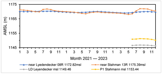 The relatively shallow depth of groundwater observed at the study sites, generally between 2.2 and 3.3 m (Figure 9), with fluctuation reflecting the interactions between irrigation practices and groundwater levels. In particular, the fluctuations reinforced the influence of surface water availability on groundwater recharge. Specifically, the rise in groundwater elevation at all sites coincided with periods of water release in the Rio Grande, reinforcing the influence of surface water availability on groundwater recharge. These observations suggest that irrigation practices not only directly influence DP but also have a cascading effect on regional groundwater systems, especially in areas where surface water is intermittently available.