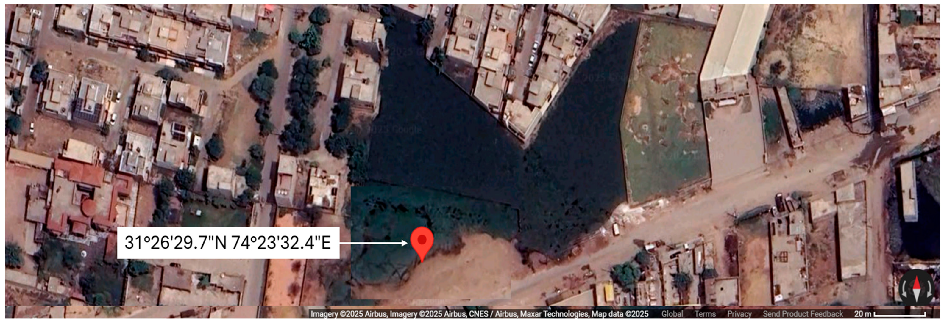 - Government of Pakistan, Ministry of Environment, Local Government and Rural Development. Statutory Notification S.R.O. 549(I)/2000, National Environmental Quality Standards (NEQS); The Gazette of Pakistan: Islamabad, Pakistan, 2000. Available online: https://environment.gov.pk/SiteImage/Misc/files/Rules/SRO549I2000NEQS.pdf (accessed on 22 July 2025).