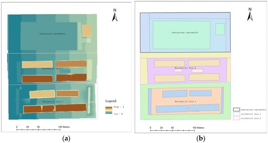 Building vector data for the study area was obtained from a combination of official cadastral statistics and OpenStreetMap (OSM) public datasets [29,30]. The official cadastral data provide comprehensive coverage of residential and commercial buildings, including attributes such as unique ID, type, and footprint area. To improve spatial completeness, especially for small-scale or recently constructed buildings that may not be included in official records, OSM data were used as a supplementary source. The combined dataset was cross-checked to remove duplicates and ensure consistency in building classification. The Lixia District contains 13,105 residential buildings (85.3%) and 2212 commercial buildings (see Table 1). Field surveys revealed that the northwest area contains a large number of aging residential communities.