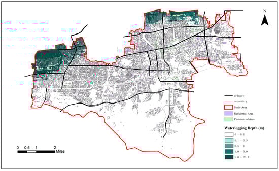 In recent years, urban pluvial waterlogging has emerged as a frequent and severe natural disaster worldwide, causing substantial socioeconomic losses [1]. Accelerated urbanization, increased impervious surfaces, and the rising frequency of extreme precipitation events have significantly weakened the capacity of cities to regulate runoff, leading to growing risks of urban inundation [2,3]. These waterloggings not only threaten the safe operation of cities but also endanger residents’ lives and property. Against this backdrop, accurately simulating urban flood scenarios-particularly at the community scale and quantitatively assessing building-level economic losses have become central issues in urban disaster prevention and mitigation research [4,5].