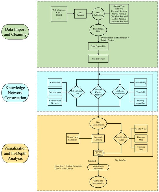 CiteSpace facilitates academic network analysis through three stages: data import, network construction, and visualization (Figure 2).