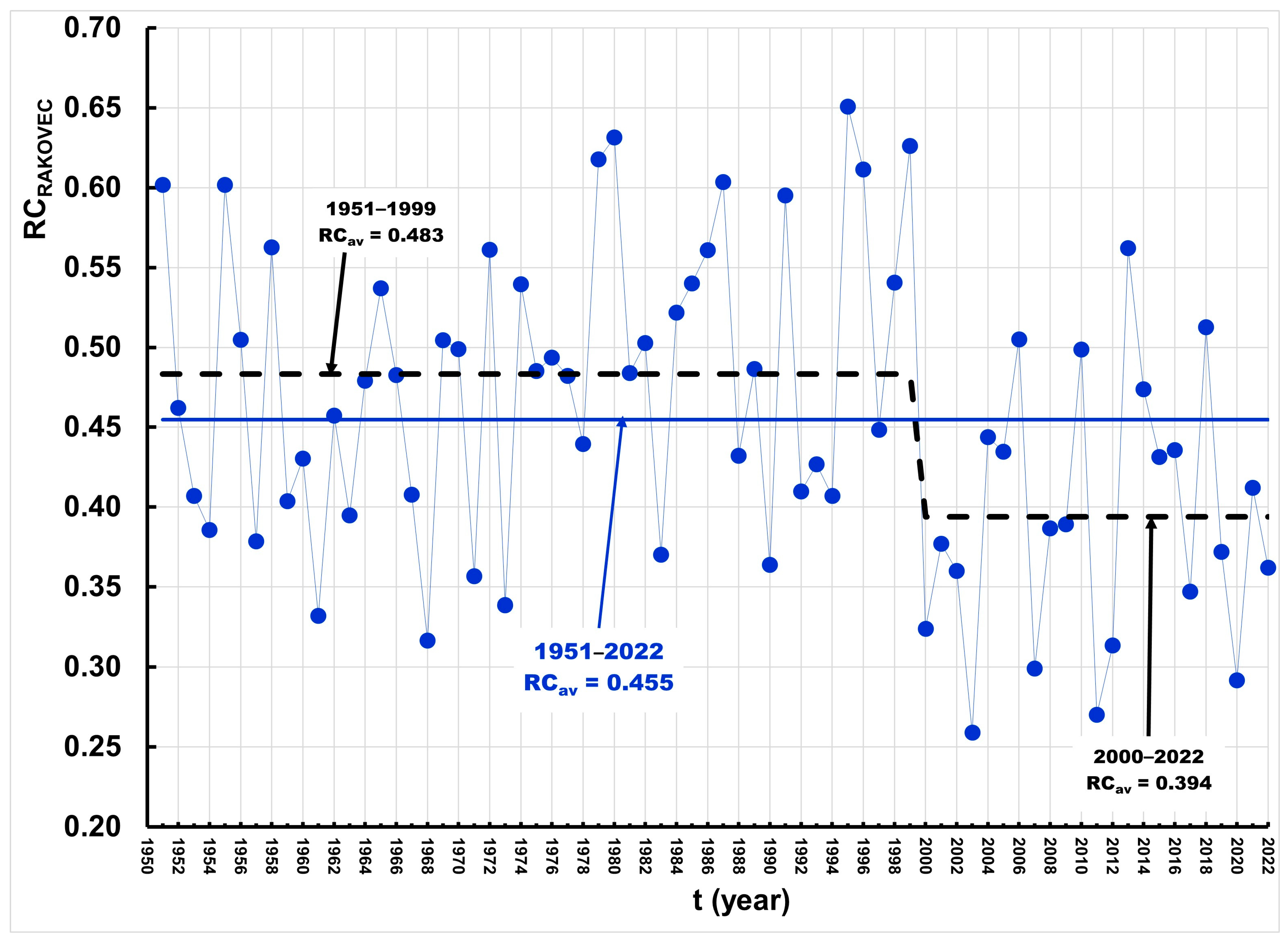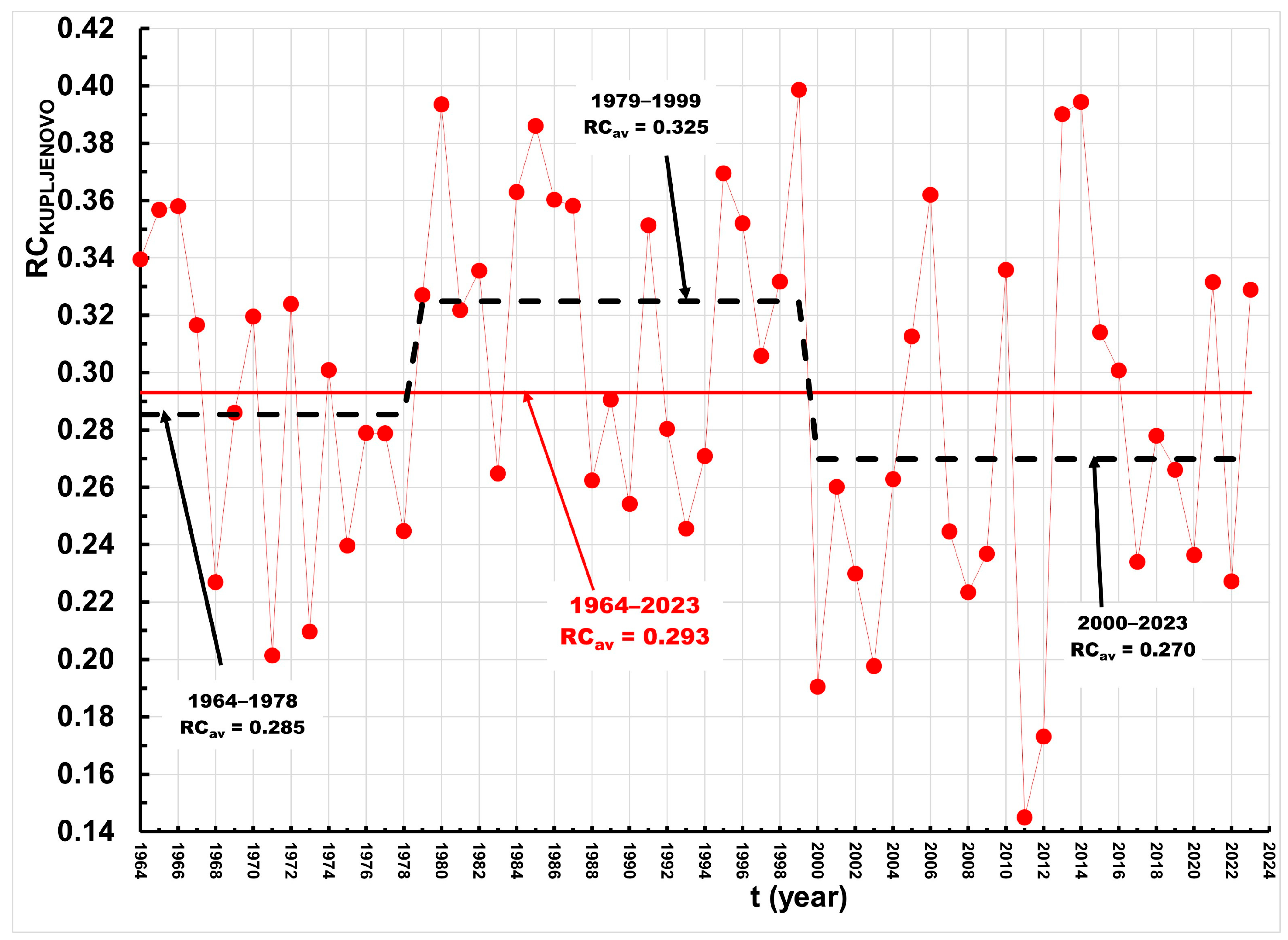 - Bonacci, O.; Žaknić-Čatović, A.; Roje-Bonacci, T.; Bonacci, D. Assessing the Effects of Climate Change on the Hydrology of a Small Catchment: The Krapina River near Kupljenovo. Water 2025, 17, 1403. [Google Scholar] [CrossRef]