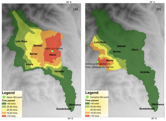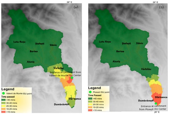 The maps of travel time from Slănic and Câmpina ISU are presented in