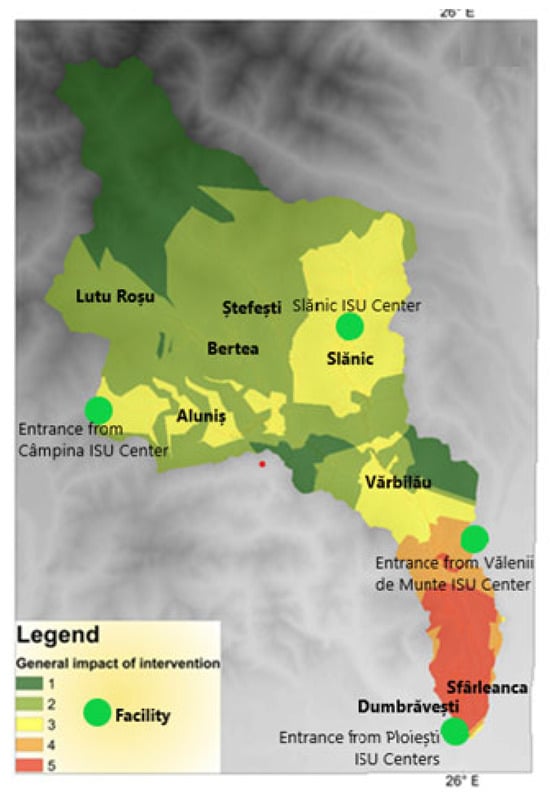 33]. By contrast, Aluniş can be reached within 10–20 min from the Câmpina entrance, while Slănic and its surroundings are accessible in under 10 min. Within this limited context, the Slănic ISU emerges as the most likely facility to be mobilized, mainly due to geographic proximity, despite its restricted resources.