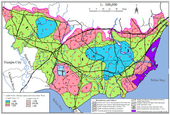 - Hebei Hydrogeological and Engineering Geological Team, Hebei Geological Bureau. Hydrogeological Investigation Report on Irrigation Water Supply in the Eastern Hebei Plain; Hebei Hydrogeological and Engineering Geological Team, Hebei Geological Bureau: Shijiazhuang, China, 1983. (In Chinese)