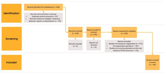 - Vakili, M.; Cagnetta, G.; Deng, S.; Wang, W.; Gholami, Z.; Gholami, F.; Dastyar, W.; Mojiri, A.; Blaney, L. Regeneration of exhausted adsorbents after PFAS adsorption: A critical review. J. Hazard. Mater. 2024, 471, 134429. [Google Scholar] [CrossRef]