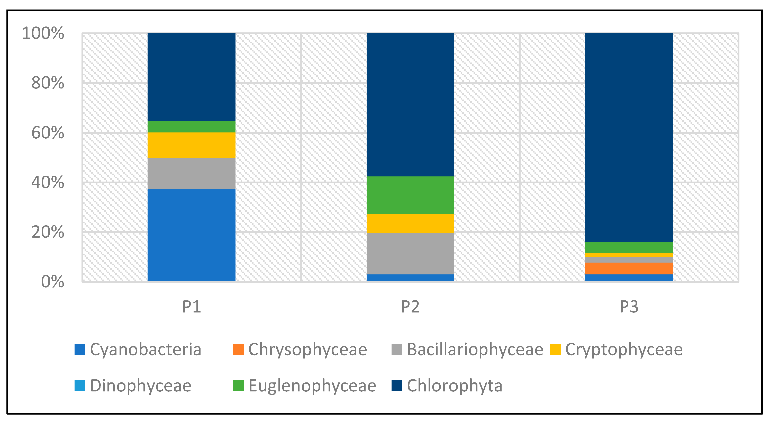 39]. Phytoplankton itself develops thanks to the availability of water-soluble orthophosphates, and its mass appearance (bloom) affects the growth of primary production in the reservoir. The amount of synergistic toxins secreted by phytoplankton also increases, which often leads to intoxication of the water reservoir, determining changes in water quality parameters [