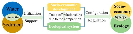 Both socioeconomic development and ecosystem health require water-sediment resources as fundamental support, yet exhibit trade-off relationships in their utilization patterns (Figure 1). Through anthropogenic allocation and regulation, synergistic development between socioeconomic systems and ecosystems can be achieved while maintaining rational utilization of water-sediment resources. Nevertheless, current scientific research and management practices still fall short of fully recognizing and utilizing the integrated characteristics of water and sediment. In particular, water and sediment are inseparable in sediment-laden rivers, and the interrelation between socio-economic systems and ecological processes under integrated water-sediment allocation should be considered. Resource utilization can only be accurately understood through this lens. The utilization and allocation of water and sediment resources play a crucial role in promoting the sustainable development of river basins [10].